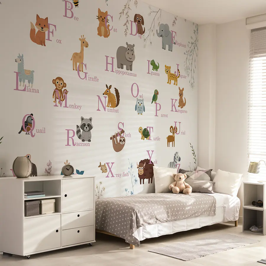 Wall murals Wallpaper with animals and letters