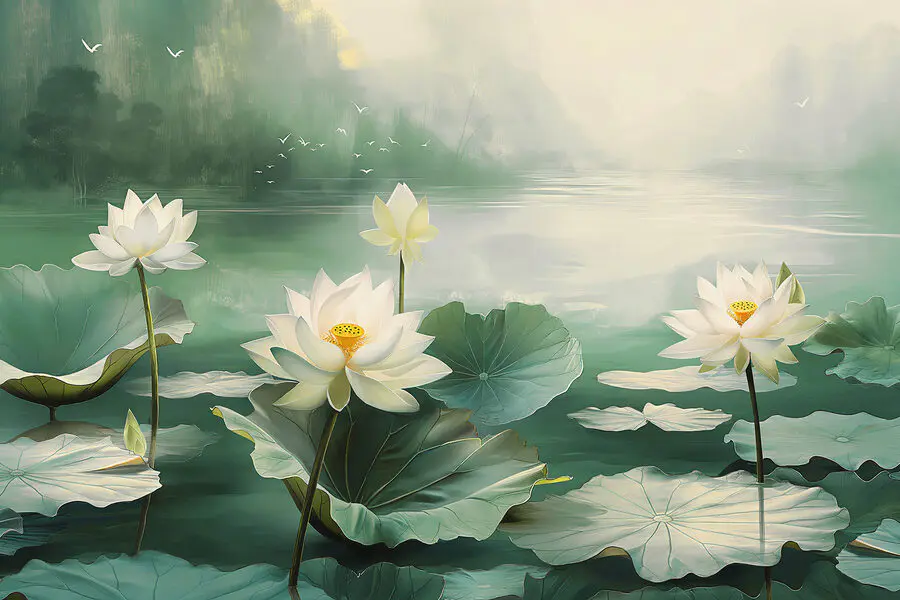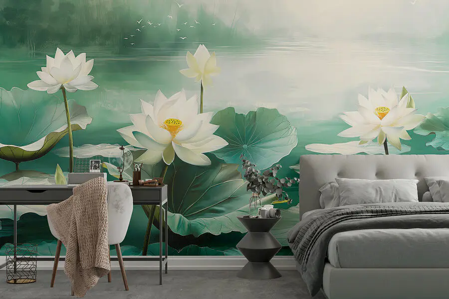 Imagine this: you walk into a room and suddenly, you're by a serene lake, surrounded by elegant white flowers and lush leaves. This wall mural is like a mini-vacation—a peaceful escape without leaving home. The soft hues and tranquil vibe turn any space into a calm haven. Perfect for those who dream of nature while juggling the city's chaos. Plus, there's something magical about seeing lotus blooms on your wall. It’s not just decor; it’s a breath of fresh air—indoors. Bring a slice of paradise to your everyday life!