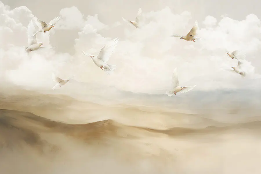Wall murals Group of white birds flying in the sky