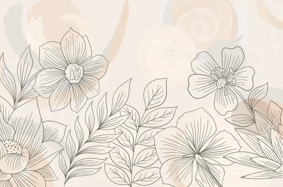 Wall murals Drawing of flowers and leaves